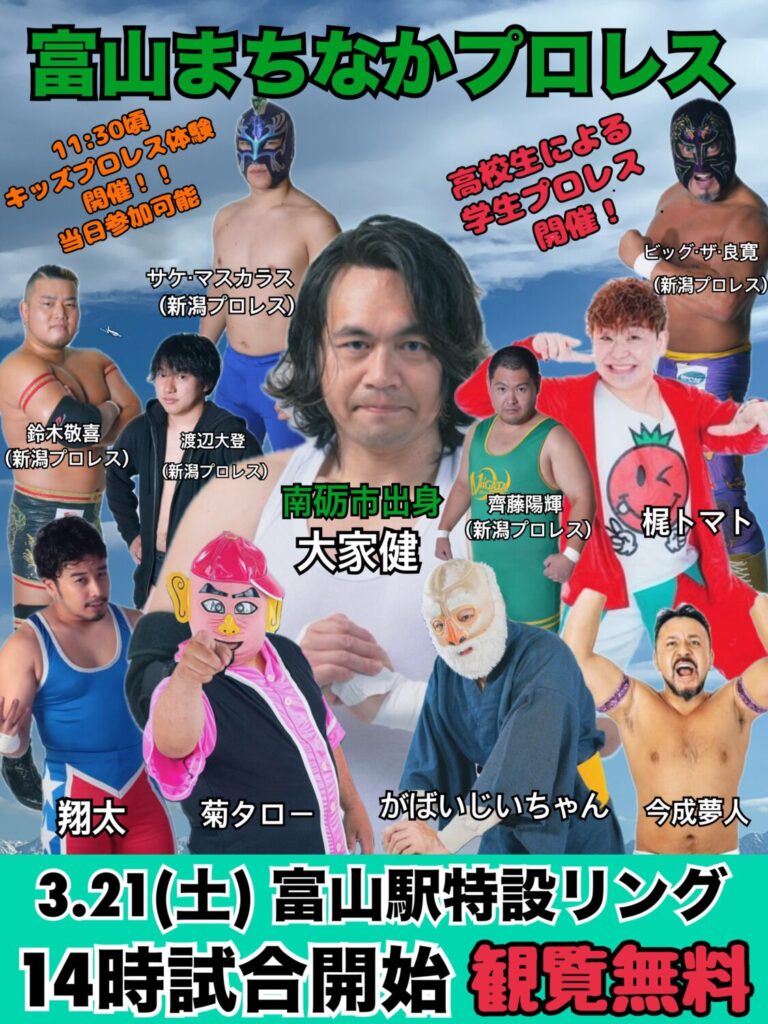 【連絡先】富山まちなかプロレス実行委員会(📞090-2090-3615)