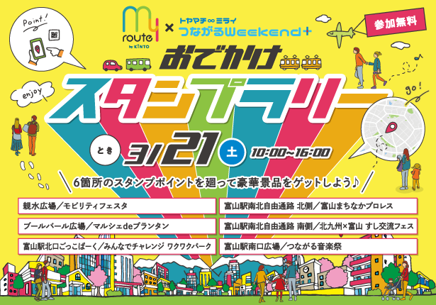myroute スタンプラリー【受付ブース】富山駅南口駅前広場【景品受渡場所】富山市親水広場 モビリティフェスタ内